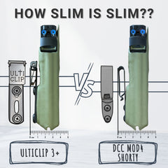 • Both the Ulticlip 3+ and the DCC Mod 4 Shorty will latch on to the fabric of your waistband and HOLD ON without a belt. Scroll down to learn more about Ulticlip vs DCC Mod 4 ⬇️