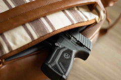 - Discreet concealed carry compartment keeps handgun separate from contents Ambidextrous internal holster attaches with hook and loop, and is fully adjustable for height and angle