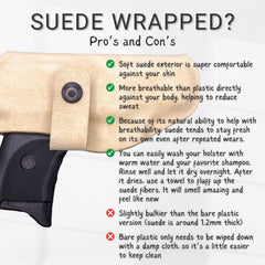 - Kydex and suede-wrapped Teddy for secure hold and comfort