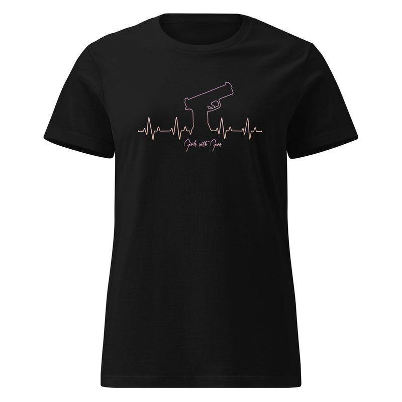 The Gunbeat Sunrise Pulse Women’s T-shirt skims your shape with a semi-fitted, flattering cut. Made from soft, lightweight cotton, it’s ideal for layering or wearing on its own. Show off the bold pink-to-orange heartbeat gun graphic in comfort and style, wherever your day takes you.