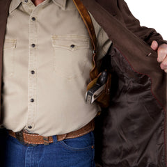 Finished in a vintage, genuine brown leather with reinforced stitching throughout, this is a rugged yet refined solution for concealed or open carry.